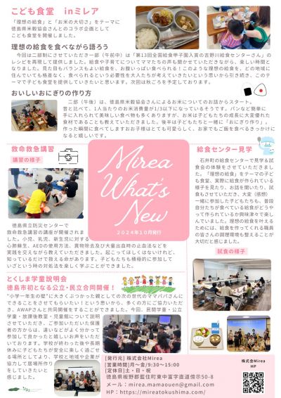 ✨年2回(4月・10月)にお届けしている「Mirea ME NEWS Letter」✨Mireaでは、子ども食堂や救命救急訓練、給食センターの見学や学童説明会など、ここには書き切れませんが、様々な活動を行っています。